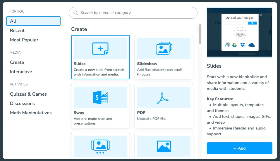 Access thousands of editable, curriculum-ready lessons and upload your own materials to make them interactive-saving planning time.
